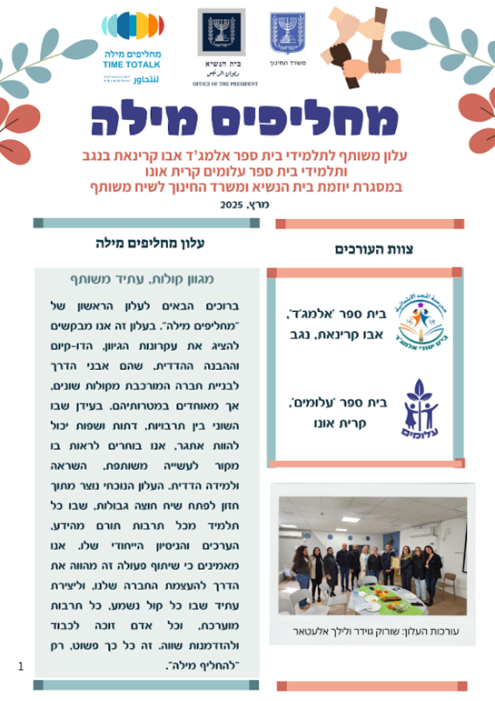וכצעד ראשון ומרגש הוצאנו עיתון מקוון עם תלמידי בית ספר "אלמג'ד" – עלון ראשון שעוסק בחגים – פורים ורמדאן. תהליך העבודה היה מדהים ומרגש וכלל "פאדלט" משותף בו כתבו הילדים והצוות של שני בתי הספר.